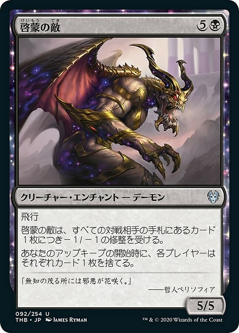 ![]() Variations— Parts— | Enemy of Enlightenment5 / 5 Flying This creature gets -1/-1 for each card in your opponents' hands. At the beginning of your upkeep, each player discards a card.
