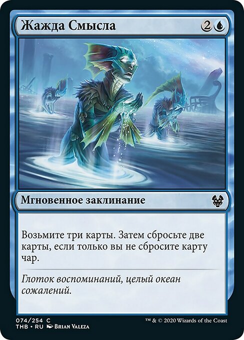 |  Variations— Parts— | Sete di SignificatoPesca tre carte. Poi scarta due carte a meno che non scarti una carta incantesimo.