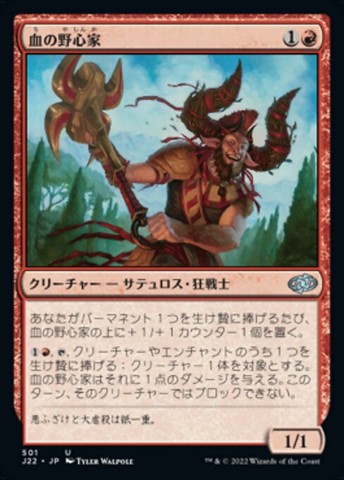 ![]() Variations— Parts— | 血の野心家1 / 1 あなたが他のパーマネントを1つ生け贄に捧げるたび、血の野心家の上に+1/+1カウンターを1個置く。