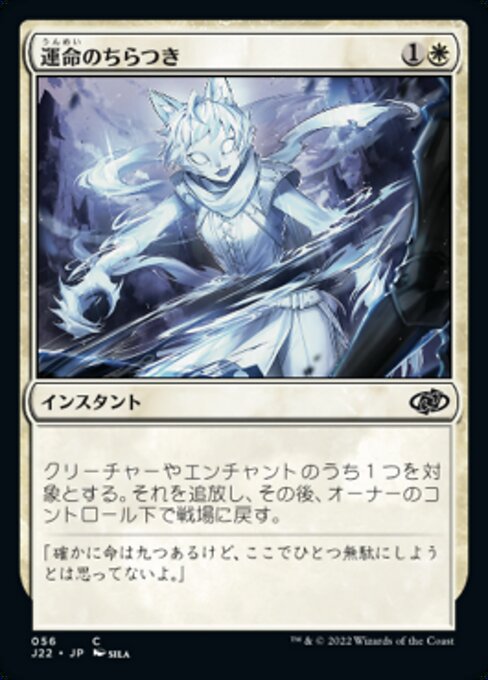 |  Variations— Parts— | 運命のちらつきクリーチャー1体かエンチャント1つを対象とし、それを追放する。その後、それをオーナーのコントロール下で戦場に戻す。