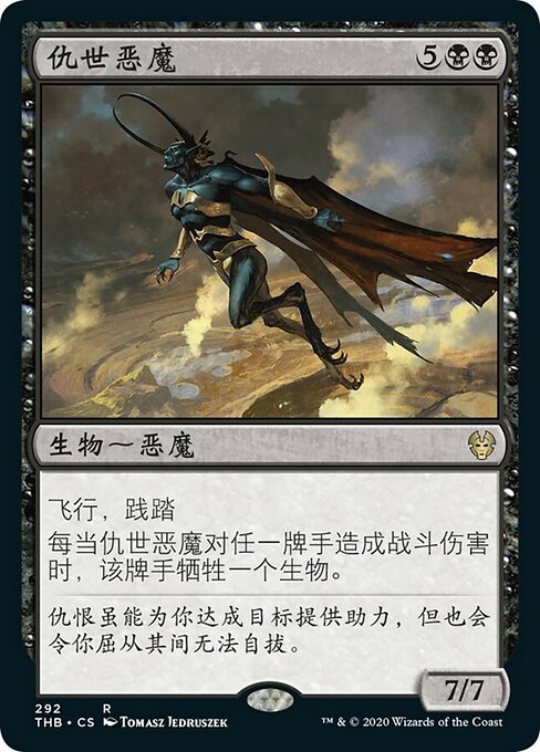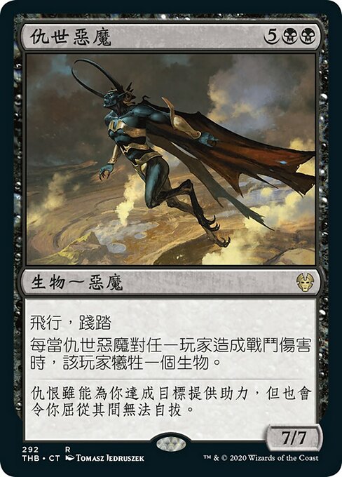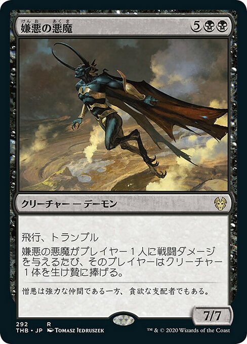 ![]() Variations— Parts— | 嫌悪の悪魔7 / 7 飛行、トランプル 嫌悪の悪魔がプレイヤー1人に戦闘ダメージを与えるたび、そのプレイヤーはクリーチャー1体を生け贄に捧げる。