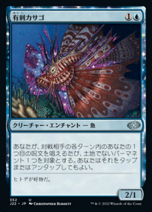 ![]() Variations— Parts— | 有刺カサゴ2 / 1 対戦相手の各ターン内で初めてあなたが呪文を唱えるたび、土地でないパーマネント1つを対象とする。あなたはそれをタップまたはアンタップしてよもよい。