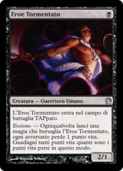 ![]() Variations— Parts— | Tormented Hero2 / 1 This creature enters tapped. Heroic — Whenever you cast a spell that targets this creature, each opponent loses 1 life. You gain life equal to the life lost this way.