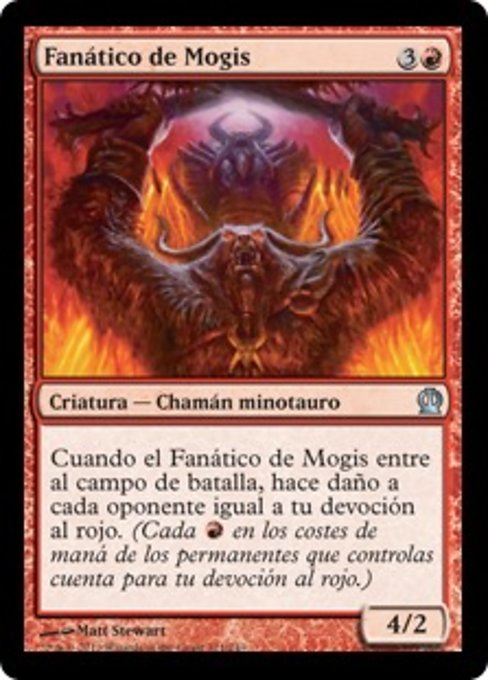 ![]() Variations— Parts— | Fanatic of Mogis4 / 2 When this creature enters, it deals damage to each opponent equal to your devotion to red. (Each