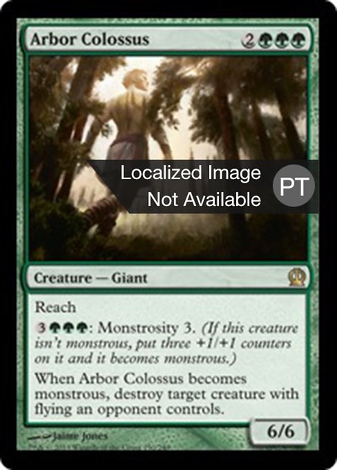 ![]() Variations— Parts— | Arbor Colossus6 / 6 Reach When this creature becomes monstrous, destroy target creature with flying an opponent controls.