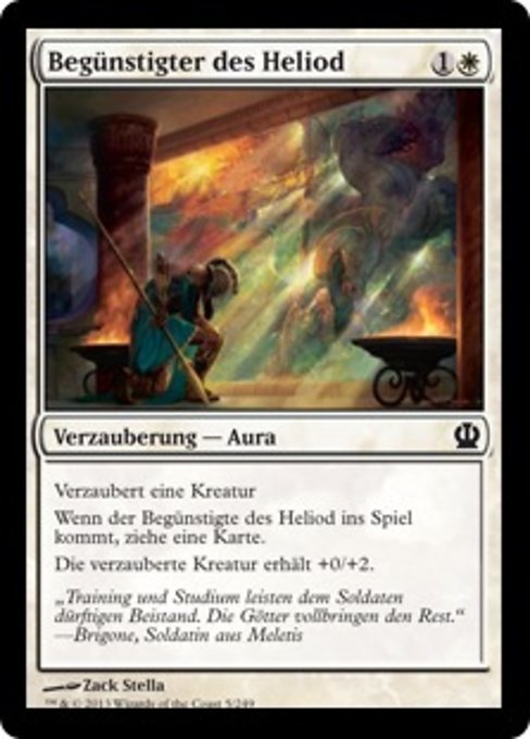 ![]() Variations— Parts— | Chosen by HeliodEnchant creature When this Aura enters, draw a card. Enchanted creature gets +0/+2.