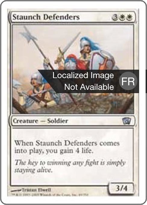 |  Variations— Parts— | Défenseurs inébranlables3 / 4 When this creature enters, you gain 4 life.