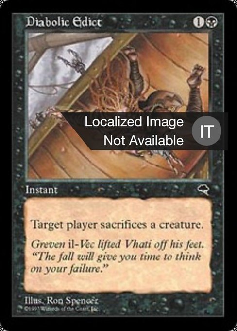 |  Variations— Parts— | 悪魔の布告Target player sacrifices a creature of their choice.