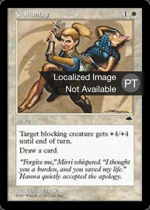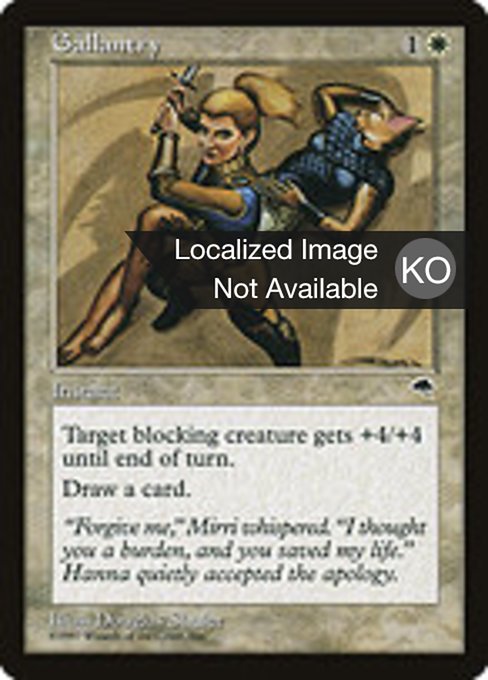 |  Variations— Parts— | 勇敢な行為Target blocking creature gets +4/+4 until end of turn. Draw a card.