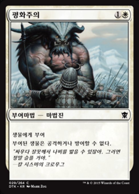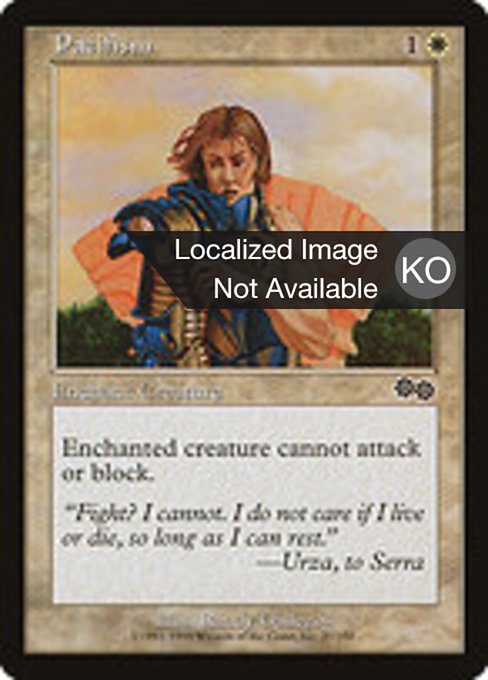 ![]() Variations— Parts— | PacifismEnchant creature Enchanted creature can't attack or block.