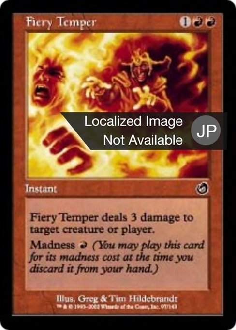 ![]() Variations— Parts— | Temperamento FocosoIl Temperamento Focoso infligge 3 danni a una creatura o a un giocatore bersaglio. Follia