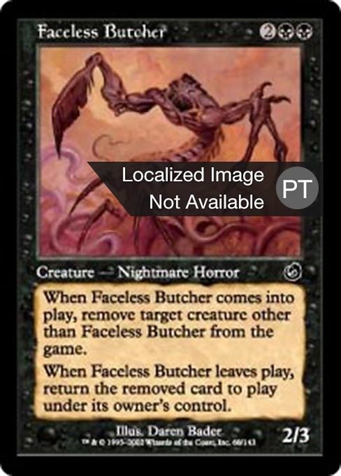 LegalitiesLegal Duel Penny Predh Legacy Modern Pauper Vintage Commander Premodern Oathbreaker Paupercommander Not Legal Brawl Future Alchemy Pioneer Historic Standard Timeless Gladiator Oldschool Standardbrawl RulingsIf Faceless Butcher exiles a token creature, the token will cease to exist after being exiled. It won’t return to the battlefield because of the second ability.