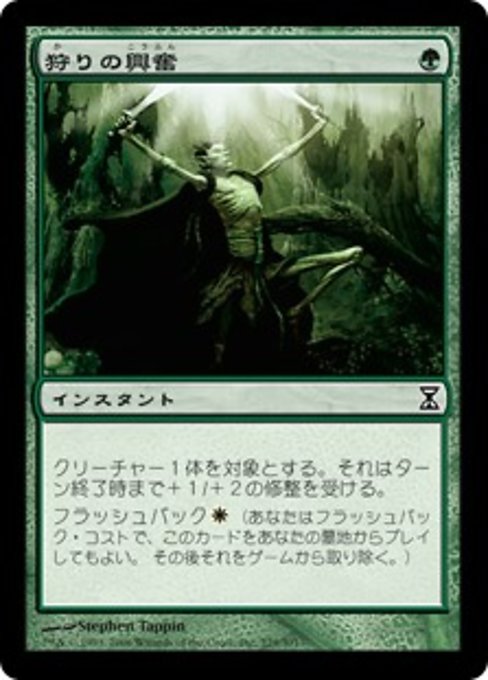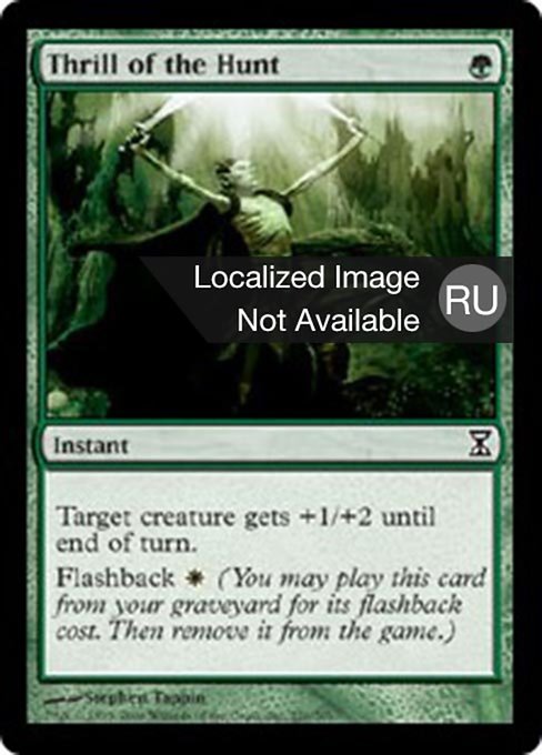 |  Variations— Parts— | Emoción de la cazaLa criatura objetivo obtiene +1/+2 hasta el final del turno. Retrospectiva