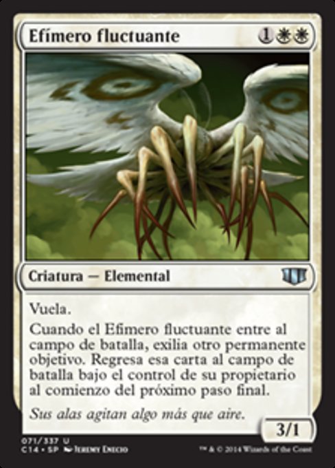 |  Variations— Parts— | Efímero fluctuante3 / 1 Vuela. Cuando el Efímero fluctuante entre al campo de batalla, exilia otro permanente objetivo. Regresa esa carta al campo de batalla bajo el control de su propietario al comienzo del próximo paso final.