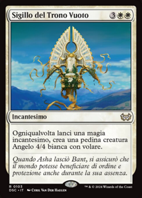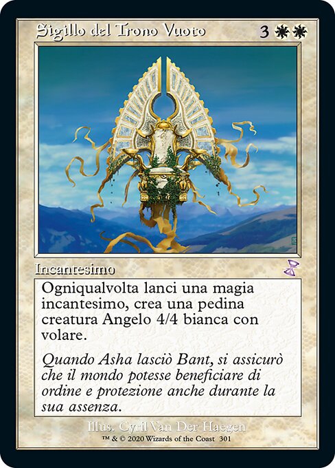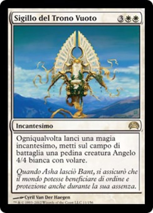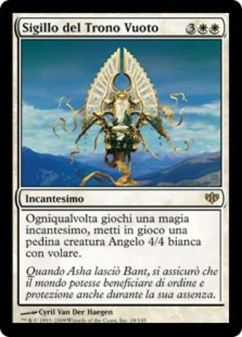 |  Variations— Parts— | Sigillo del Trono VuotoOgniqualvolta lanci una magia incantesimo, crea una pedina creatura Angelo 4/4 bianca con volare.