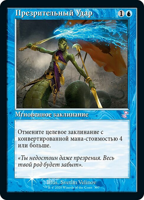 ![]() Variations— Parts— | Fendente SdegnosoNeutralizza una magia bersaglio con costo di mana convertito pari o superiore a 4.