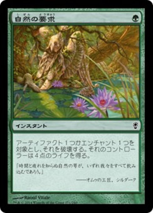 |  Variations— Parts— | 自然の要求アーティファクト1つかエンチャント1つを対象とする。それを破壊する。それのコントローラーは4点のライフを得る。