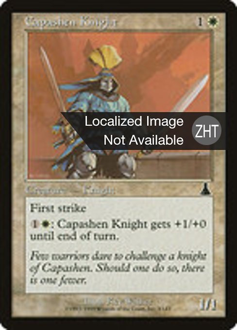 ![]() Variations— Parts— | Cavaliere Capash1 / 1 First strike (This creature deals combat damage before creatures without first strike.)