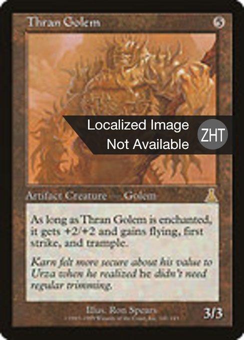 |  Variations— Parts— | スランのゴーレム3 / 3 As long as this creature is enchanted, it gets +2/+2 and has flying, first strike, and trample.