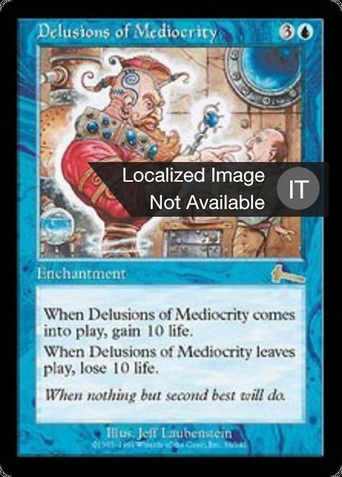 |  Variations— Parts— | Delusions of MediocrityWhen this enchantment enters, you gain 10 life. When this enchantment leaves the battlefield, you lose 10 life.