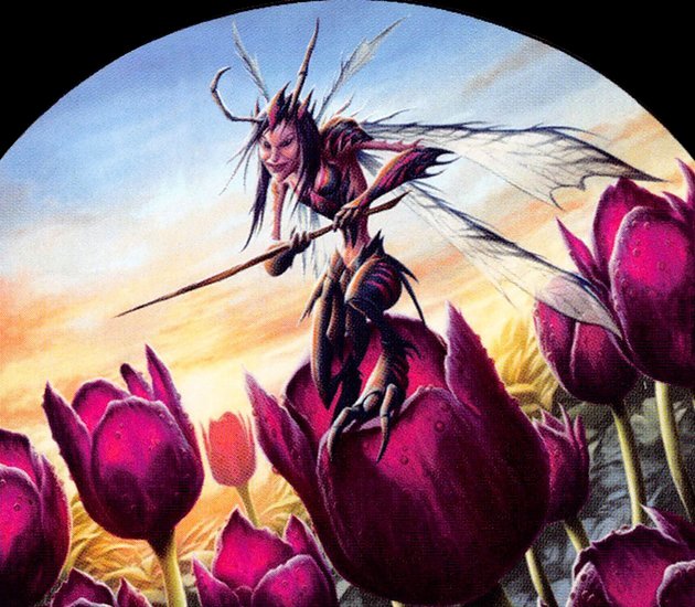 ![]() Variations— Parts : 1 | BitterblossomAt the beginning of your upkeep, you lose 1 life and create a 1/1 black Faerie Rogue creature token with flying.