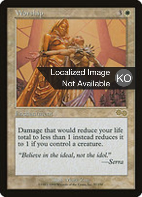LegalitiesLegal Duel Penny Predh Legacy Modern Vintage Commander Premodern Oathbreaker Not Legal Brawl Future Pauper Alchemy Pioneer Historic Standard Timeless Gladiator Oldschool Standardbrawl Paupercommander RulingsWorship does not prevent damage. It causes some damage to be unable to lower your life total. So any damage rendered useless by Worship was still dealt and is counted by effects that track the amount of damage done to a player. In addition, Worship does not prevent loss of life, so loss of life bypasses Worship.
