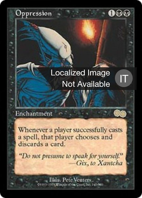 ![]() Variations— Parts— | OpressãoWhenever a player casts a spell, that player discards a card.