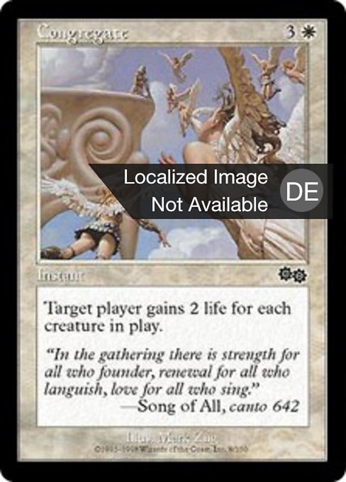 ![]() Variations— Parts— | CongregateTarget player gains 2 life for each creature on the battlefield.