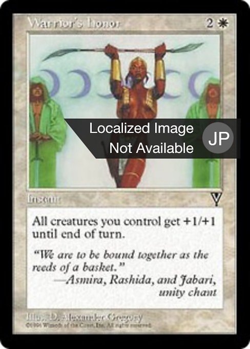 LegalitiesLegal Duel Penny Predh Legacy Modern Pauper Vintage Commander Premodern Oathbreaker Paupercommander Not Legal Brawl Future Alchemy Pioneer Historic Standard Timeless Gladiator Oldschool Standardbrawl RulingsWarrior’s Honor affects creatures you control that are on the battlefield at the time it resolves. If you put a creature onto the battlefield later in the turn, that creature won’t get the bonus.