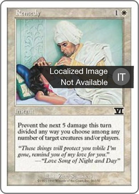 |  Variations— Parts— | MedicamentoPrevent the next 5 damage that would be dealt this turn to any number of targets, divided as you choose.