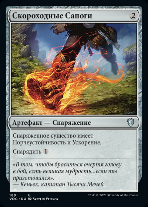 ![]() Variations— Parts— | Stivali PiedelestoLa creatura equipaggiata ha anti-malocchio e rapidità. Equipaggiare