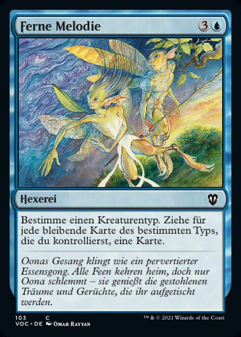 ![]() Variations— Parts— | 遠くの旋律クリーチャー・タイプ1つを選ぶ。あなたがコントロールしていてそのタイプを持つパーマネント1つにつき1枚のカードを引く。