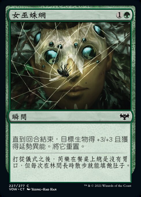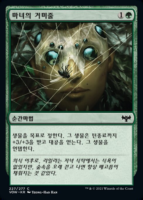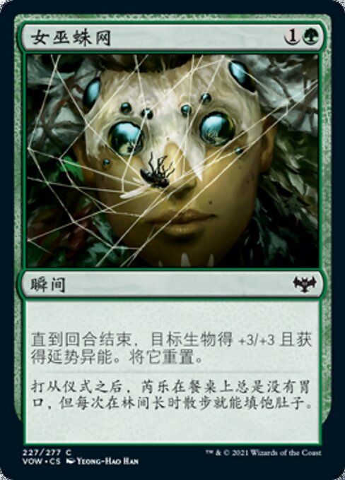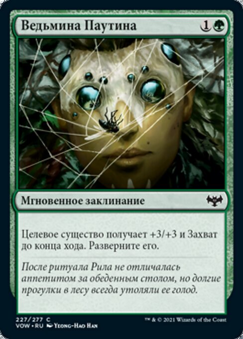 |  Variations— Parts— | Witch's WebTarget creature gets +3/+3 and gains reach until end of turn. Untap it.