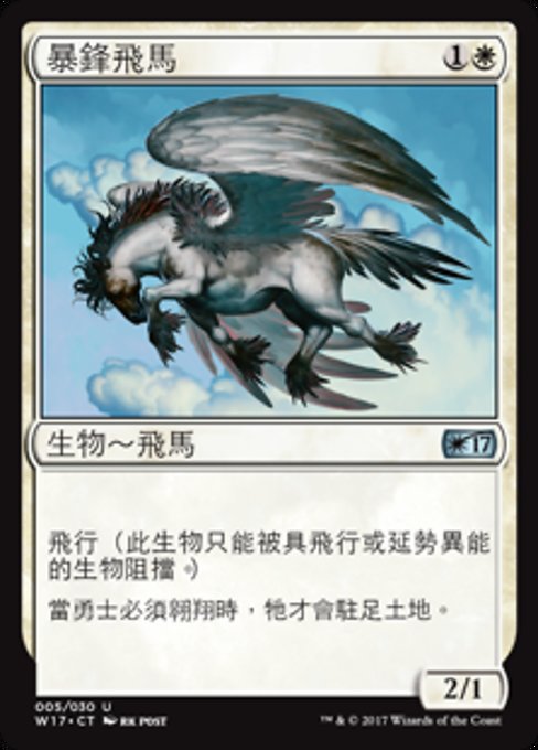 |  Variations— Parts— | 嵐前線のペガサス2 / 1 飛行(このクリーチャーは飛行や到達を持たないクリーチャーによってはブロックされない。)