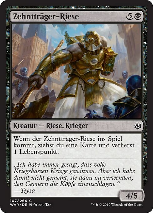 ![]() Variations— Parts— | Tithebearer Giant4 / 5 When this creature enters, you draw a card and you lose 1 life.