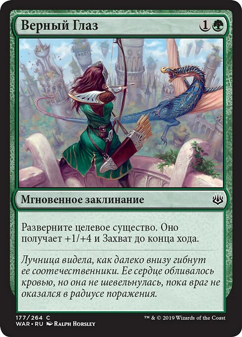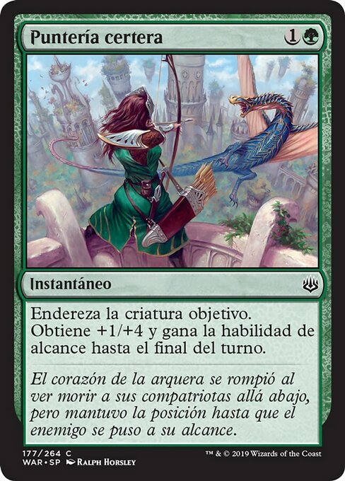 ![]() Variations— Parts— | Steady AimUntap target creature. It gets +1/+4 and gains reach until end of turn.