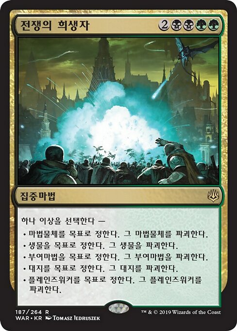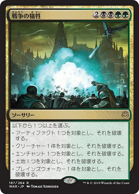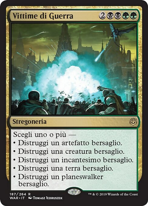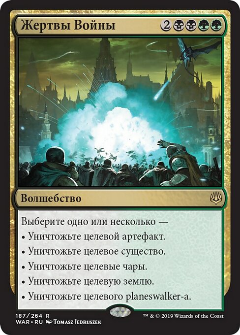 |  Variations— Parts— | Casualties of WarChoose one or more — • Destroy target artifact. • Destroy target creature. • Destroy target enchantment. • Destroy target land. • Destroy target planeswalker.