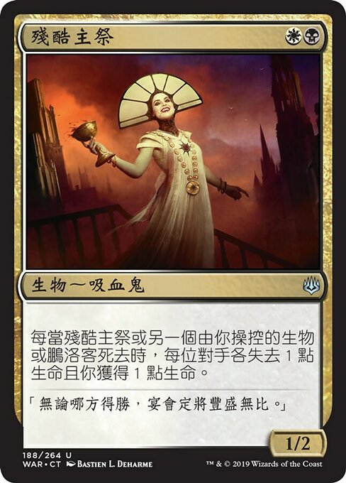 ![]() Variations— Parts— | Cruel Celebrant1 / 2 Whenever this creature or another creature or planeswalker you control dies, each opponent loses 1 life and you gain 1 life.