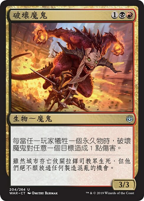 |  Variations— Parts— | Mayhem Devil3 / 3 Whenever a player sacrifices a permanent, this creature deals 1 damage to any target.