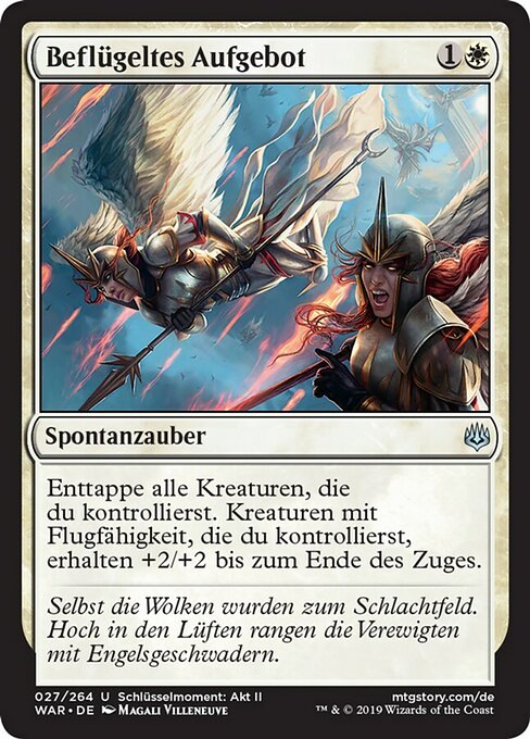 LegalitiesLegal Duel Brawl Legacy Modern Pioneer Vintage Historic Timeless Commander Gladiator Oathbreaker Not Legal Penny Predh Future Pauper Alchemy Standard Oldschool Premodern Standardbrawl Paupercommander RulingsRally of Wings affects only creatures you control at the time it resolves. Creatures that gain flying later in the turn or that you begin to control later in the turn won't get +2/+2.