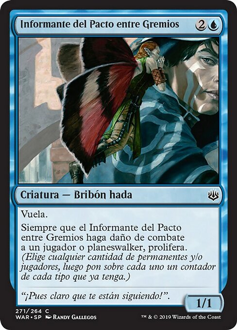 ![]() Variations— Parts— | Guildpact Informant1 / 1 Flying Whenever this creature deals combat damage to a player or planeswalker, proliferate. (Choose any number of permanents and/or players, then give each another counter of each kind already there.)