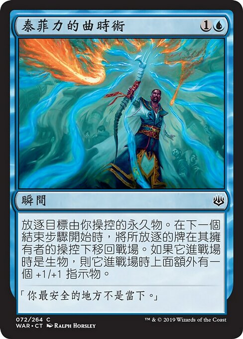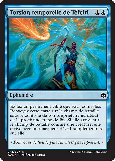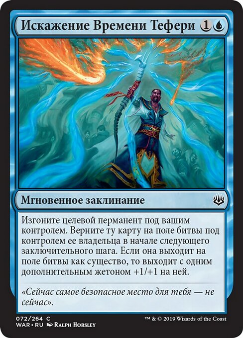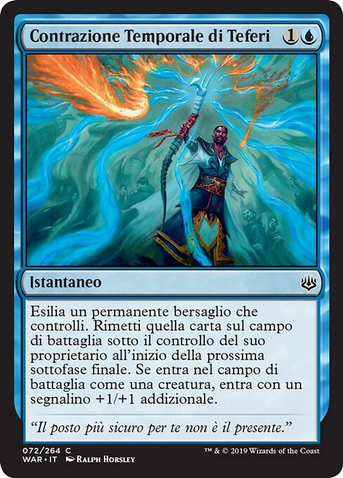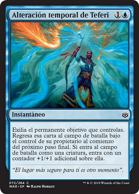 ![]() Variations— Parts— | Teferi's Time TwistExile target permanent you control. Return that card to the battlefield under its owner's control at the beginning of the next end step. If it enters as a creature, it enters with an additional +1/+1 counter on it.