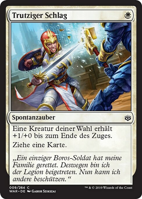 ![]() Variations— Parts— | Colpo SprezzanteUna creatura bersaglio prende +1/+0 fino alla fine del turno. Pesca una carta.