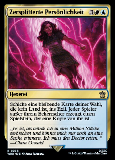 ![]() Variations : 3Parts : 2 | Fractured IdentityExile target nonland permanent. Each player other than its controller creates a token that's a copy of it.