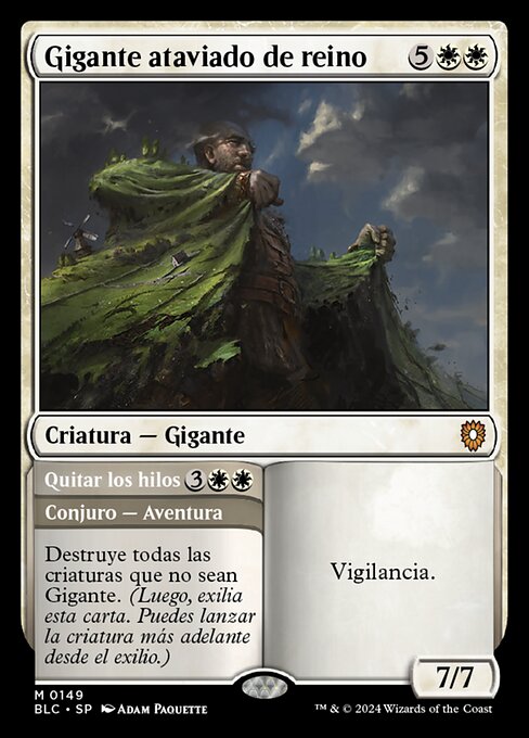 Quitar los hilosDestruye todas las criaturas que no sean Gigante. (Luego, exilia esta carta. Puedes lanzar la criatura más adelante desde el exilio.)