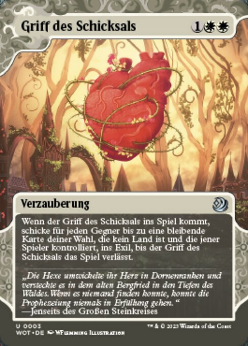 ![]() Variations— Parts— | Grasp of FateWhen this enchantment enters, for each opponent, exile up to one target nonland permanent that player controls until this enchantment leaves the battlefield. (Those permanents return under their owners' control.)