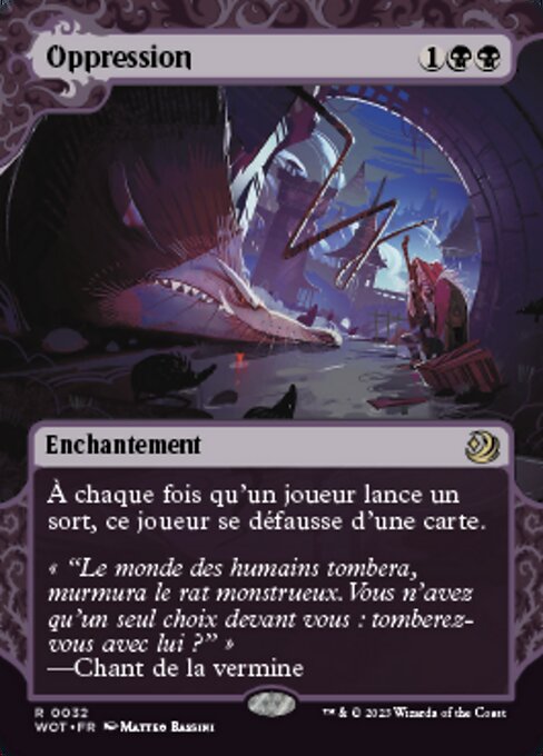 |  Variations— Parts— | OppressioneOgniqualvolta un giocatore lancia una magia, quel giocatore scarta una carta.