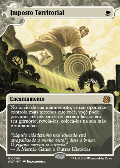 ![]() Variations— Parts— | Tassa sulle TerreAll'inizio del tuo mantenimento, se un avversario controlla più terre di te, puoi passare in rassegna il tuo grimorio per trovare fino a tre carte terra base, rivelarle e aggiungerle alla tua mano, poi rimescolare.