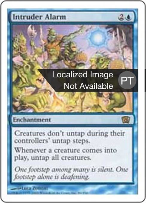 ![]() Variations— Parts— | Alarme de IntrusosAs criaturas não são desviradas durante as etapas de desvirar de seus controladores. Toda vez que uma criatura entrar no campo de batalha, desvire todas as criaturas.