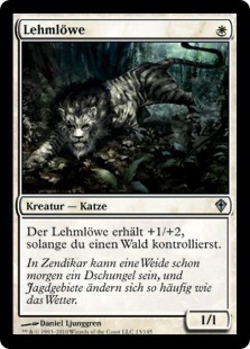 ![]() Variations— Parts— | Loam Lion1 / 1 This creature gets +1/+2 as long as you control a Forest.